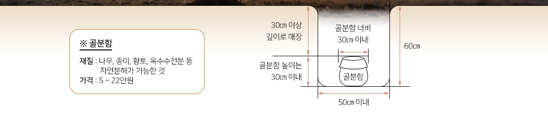 - 가로, 세로 25Cm 넓이의 지표면 아래로 50Cm 깊이의 광중을 파고,